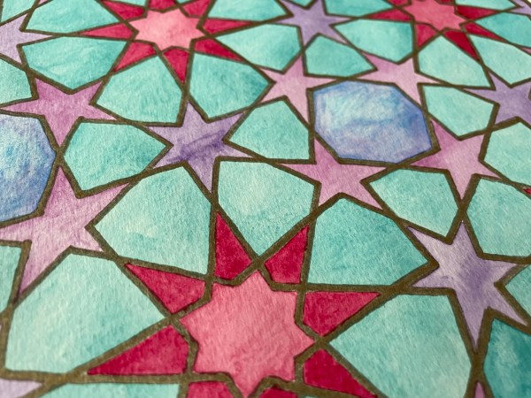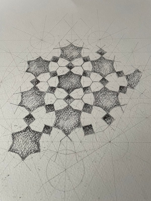 Something slightly different. A departure from the usual stars and diamonds, this is a pattern from the Gur e Amir mausoleum. The February 2022 pattern from Samira Mian's archives. This required more use of a compass...I ended up using 3 different compasses as I needed one to take a softer pencil and I prefer to... Continue Reading →