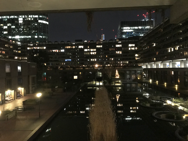 The Barbican complex is one of my favourite places. I love the brutalist architecture with housing built around central water features. It’s even rather nice at night!