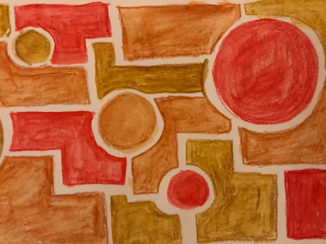 In terms of the pot, I went back to pinching. I made two pots, joined them and then formed a neck. It was a little more successful than the last time but still a little thick and clunky. Definitely not a favourite shape. I then painted on my pattern in kind of earthy tones with splashes of red. It ended up looking quite retro.