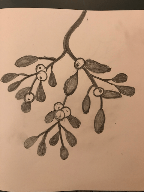 This year I went with mistletoe as my inspiration. I’ve always really loved mistletoe with its interesting elongated, rounded leaf shape and almost translucent berries.
