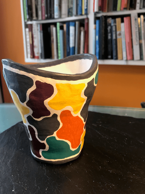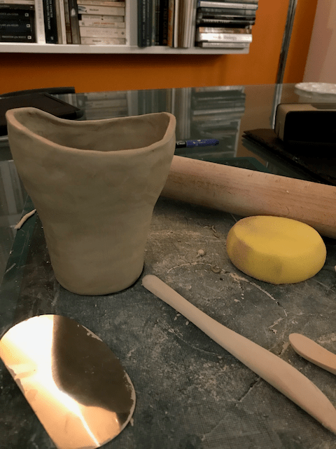 I didn’t start out with any plan and I used coils to construct it. I did a few coils and then smoothed them out to create a relatively straight sided shaped. I then added some more coils on top.