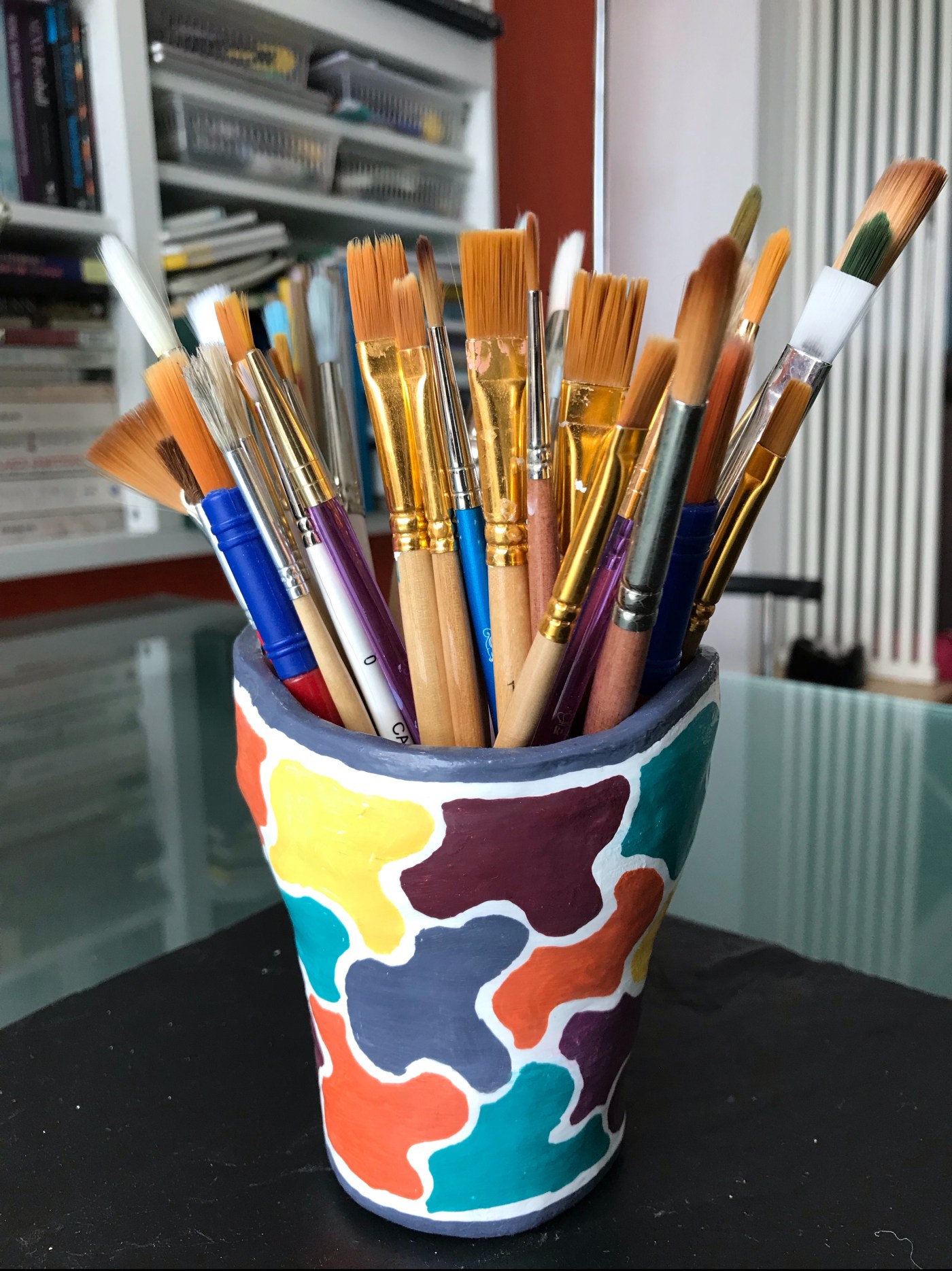 I didn’t start out with any plan and I used coils to construct it. I did a few coils and then smoothed them out to create a relatively straight sided shaped. I then added some more coils on top.