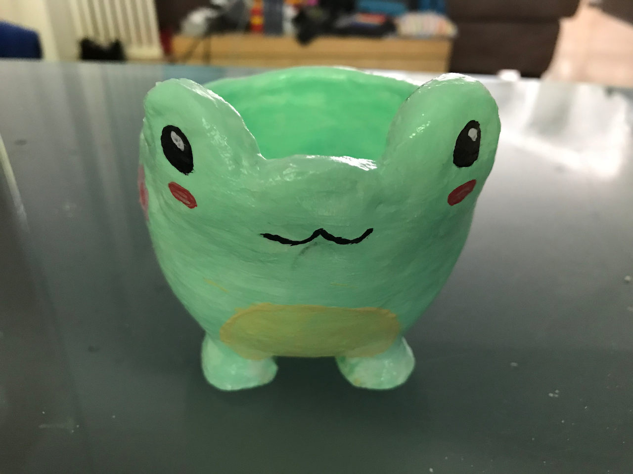 After making a variety of different types of pots, lamps and candles, I attempted something a bit more whimsical. A kawaii frog pot. Not quite sure why.