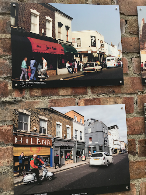 Coincidentally, we arrived on the first day of another exhibition at the Half Moon, out in the back “garden”. An exhibition of photos of the local area from 1990-2020…just before the pandemic. It’s an area that has gone through enormous change in that time, most obviously with the construction of the London Docklands. Some things haven’t changed much at all though…including our hairdresser on Roman Road!