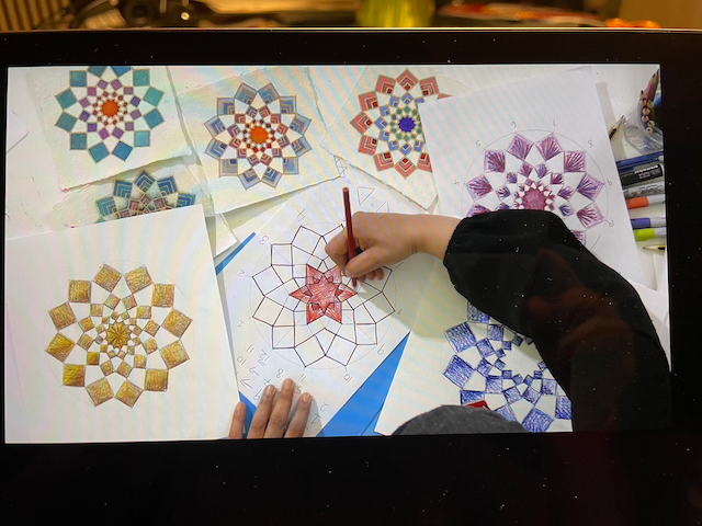 We then launched in to a more complex activity, using a 12 pointed star as a basis. Samira did the activity with next to no equipment, even using a piece of folded paper as a ruler. I cheated and used a compass and a ruler but it was interesting to see how it was possible to do something which looked this complicated with no equipment at all.