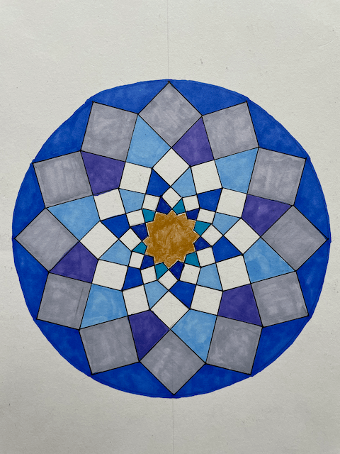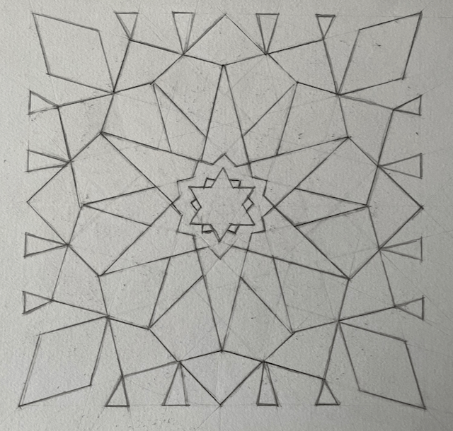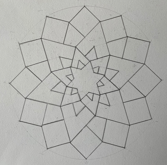 Over the past few months, I have been playing around with Islamic geometric design, sparked by a book I found while out christmas shopping. I’ve been getting on ok and having fun but have been looking for other resources to move myself forward. So I scoured the internet and I came across Samira Mian, who has a great website of resources including video tutorials and information about equipment and books.