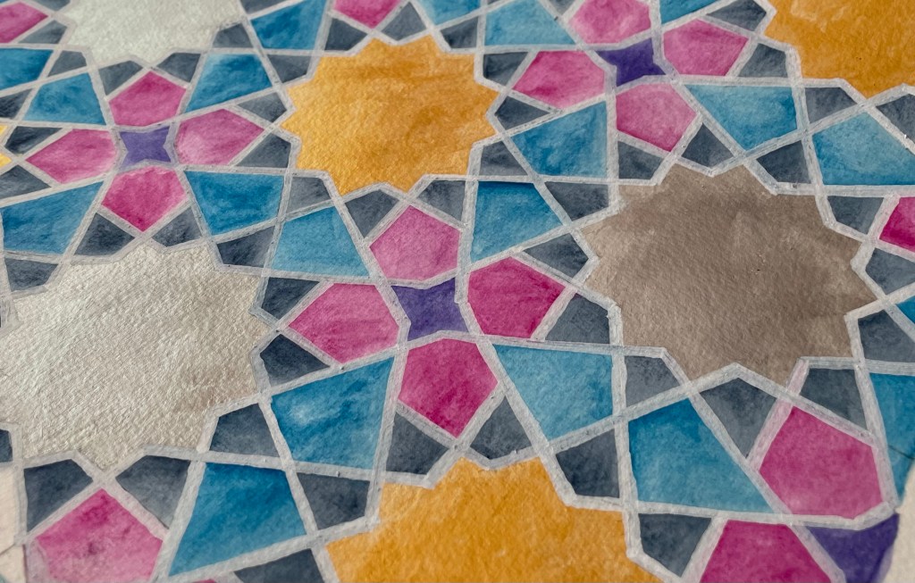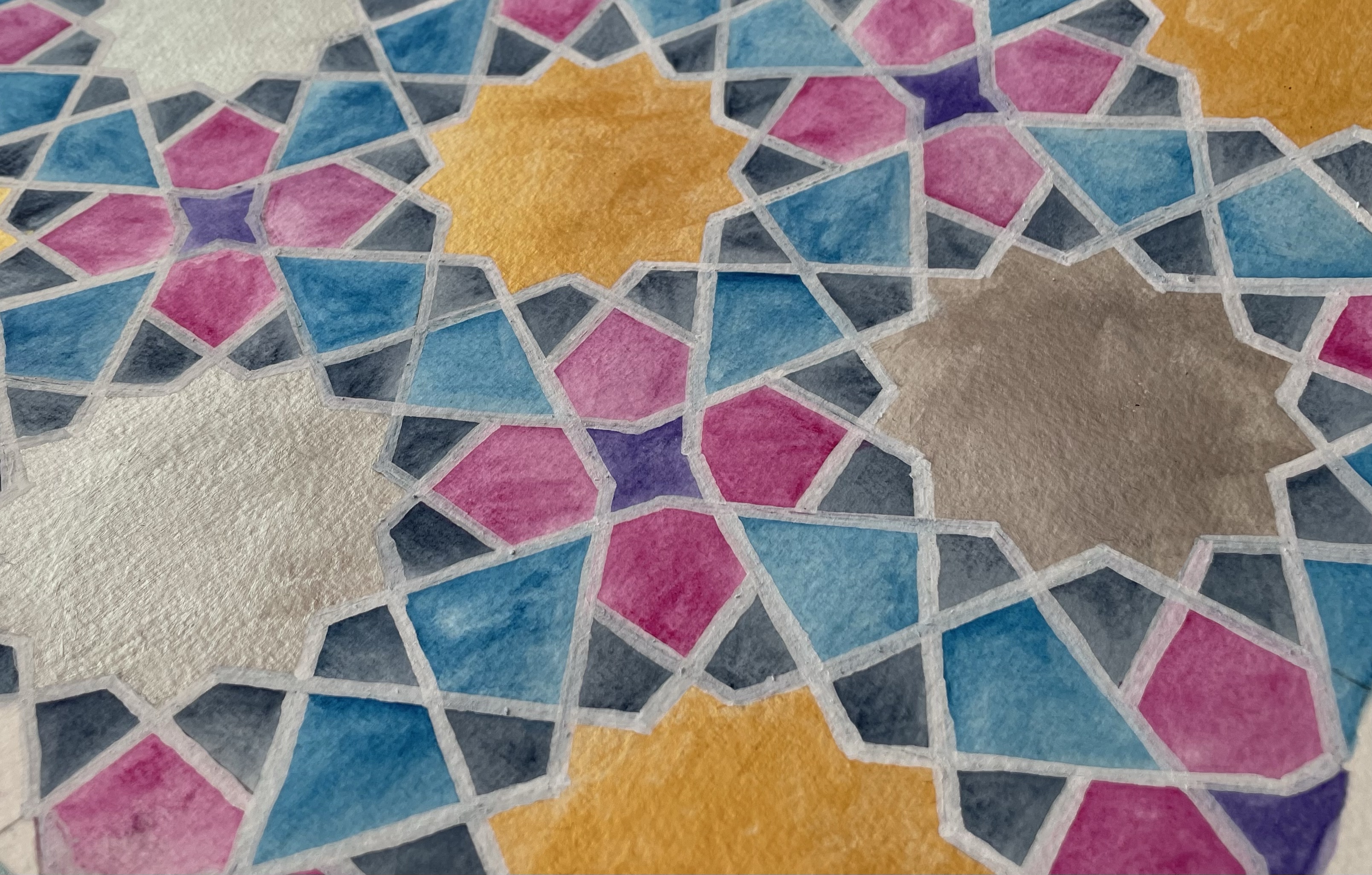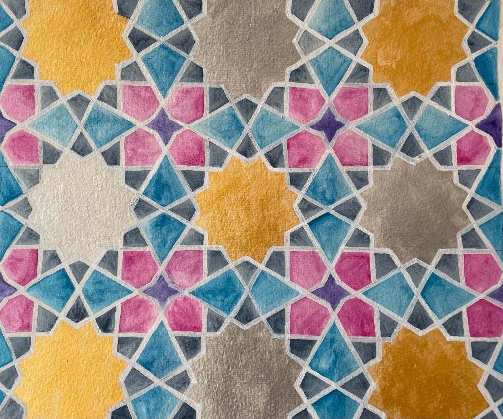 I haven’t posted anything for a bit. Behind the scenes I’ve been doing the occasional geometric design, never quite to my satisfaction. This is my latest one, which I’m a little bit happier with.