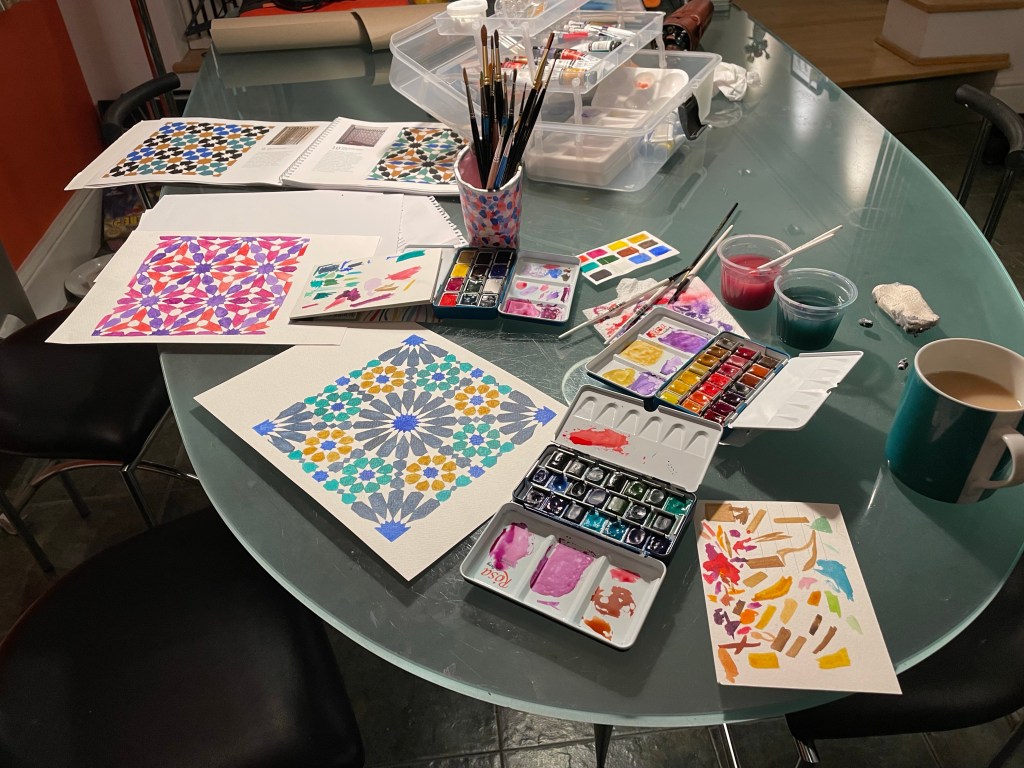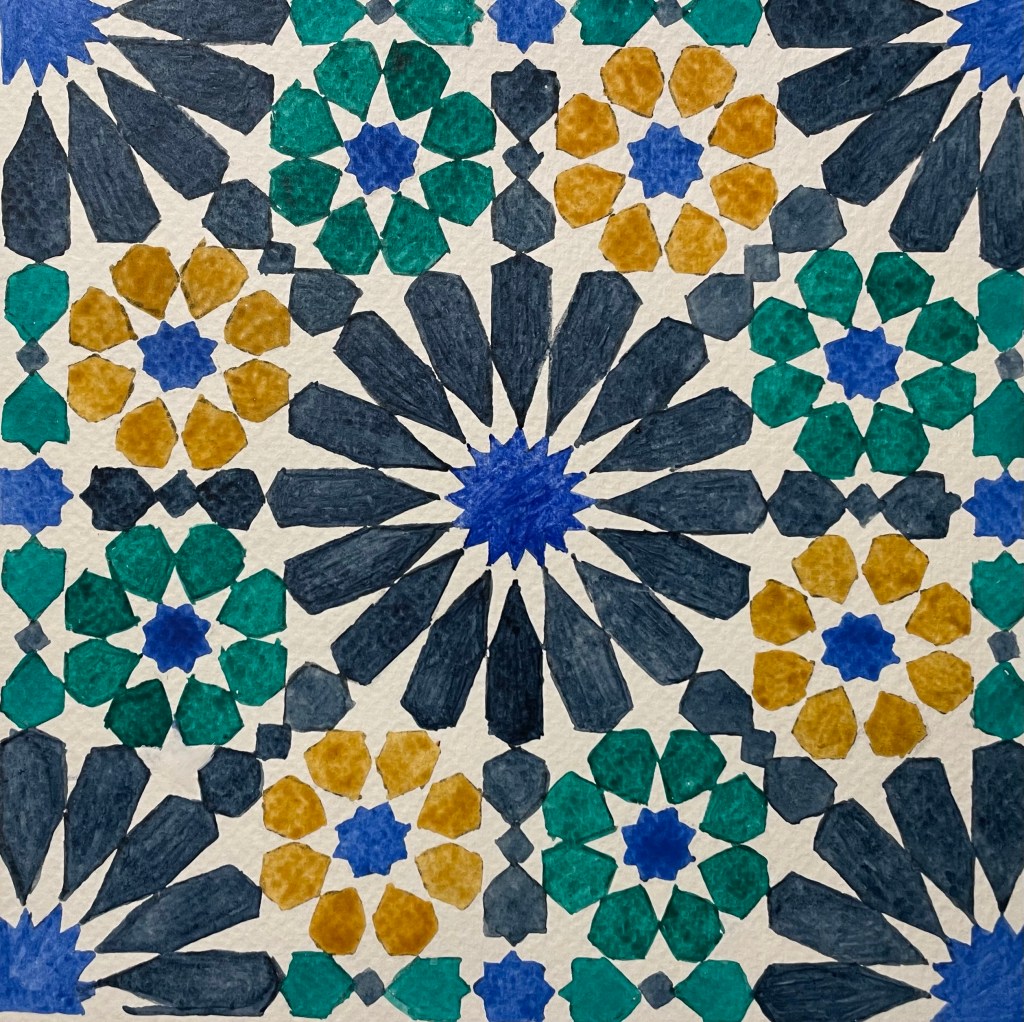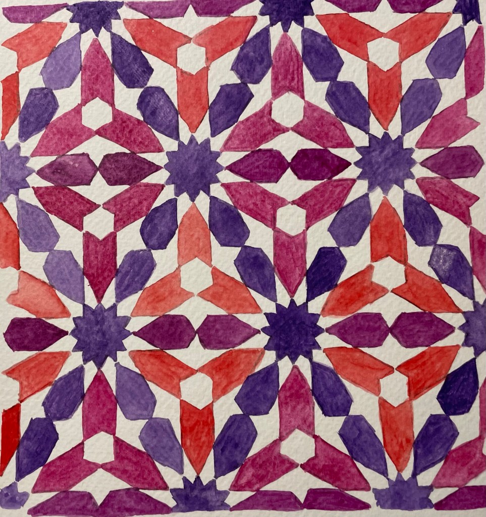 So, even though it’s the end of summer, we’re getting a bit of a last minute heatwave. Today was a gorgeous sunny day so I spent the afternoon in the garden doing a few more Alhambra patterns.