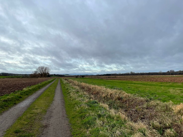We crossed the river 3 times in total as it twists and turns and then we turned away from the river just south of Tyninghame and headed across the fields. Here we’re looking back across the fields towards East Linton.