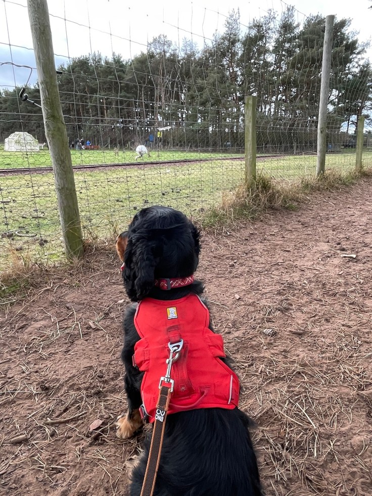 We skirted the side of the East Links family farm. The dog was intrigued by one of the exotic birds. Many a summer’s day spent with the kids here in the past…too big for it now though.