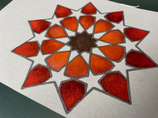 Another pattern from the Alhambra. This time taken from a ceramic dish. My interpretation ended up being not quite as sharp.