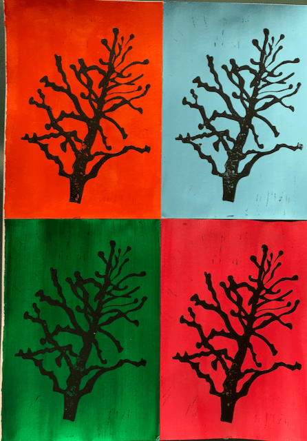 Popart linocut trees